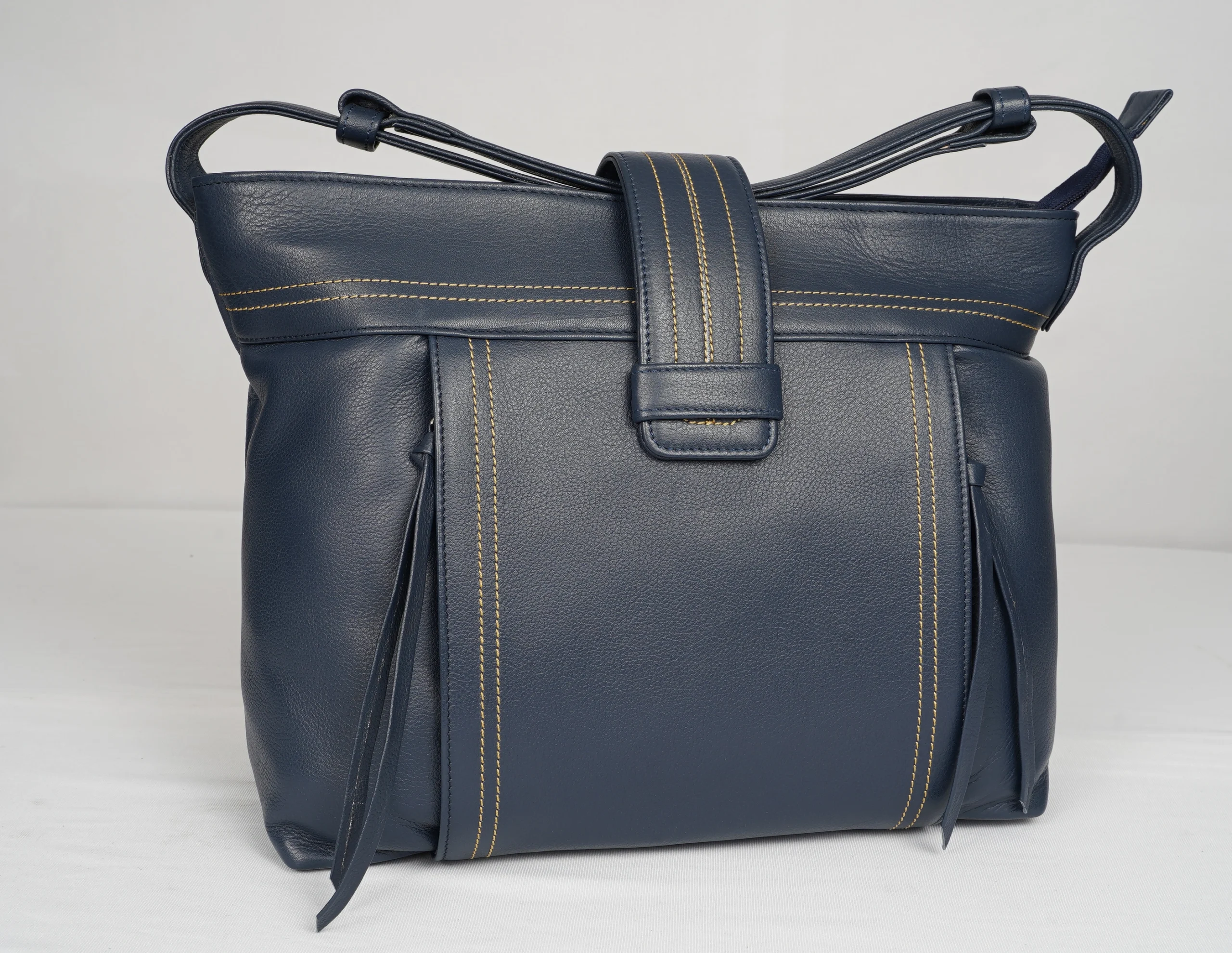 A perfect blend of style and practicality, the Midnight Leather Shoulder Bag is crafted from premium textured leather in an elegant navy blue shade. The minimal yet sophisticated design is highlighted with contrast stitching and a secure front strap closure. With spacious compartments and a comfortable shoulder sling, this bag is ideal for everyday use, office wear, or casual outings. It combines durability with timeless fashion, making it a versatile addition to any wardrobe.